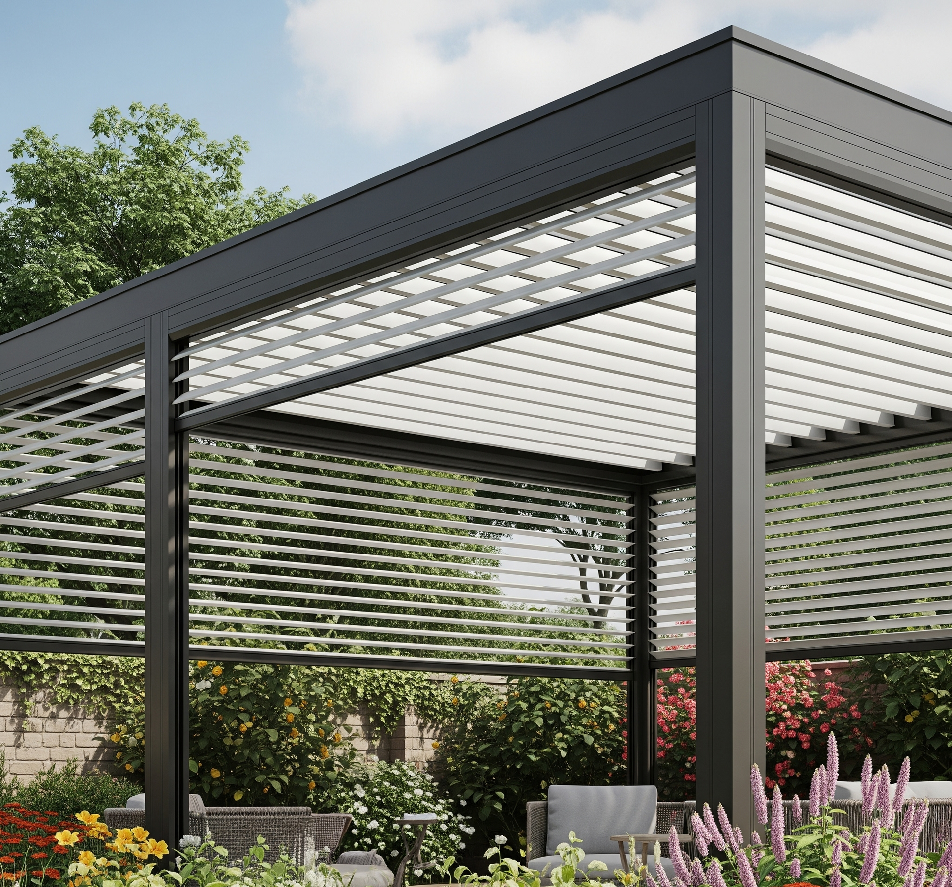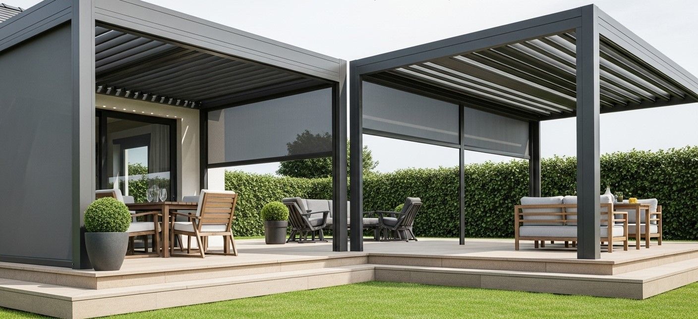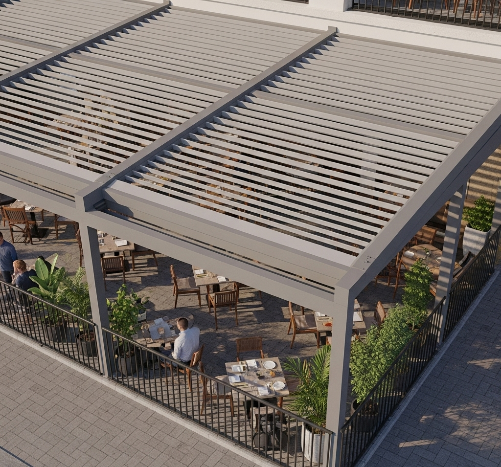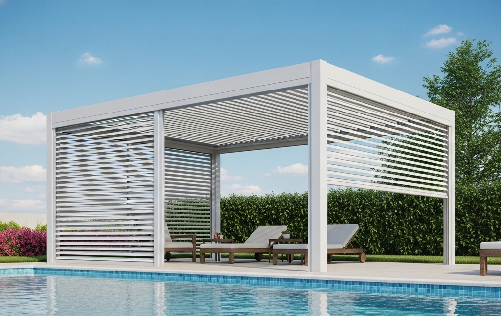 Il cuore tecnologico di queste strutture è il sistema di lame orientabili e/o retrattili, che consente la regolazione di luce, ventilazione e protezione dalle intemperie, creando ambienti vivibili tutto l’anno.